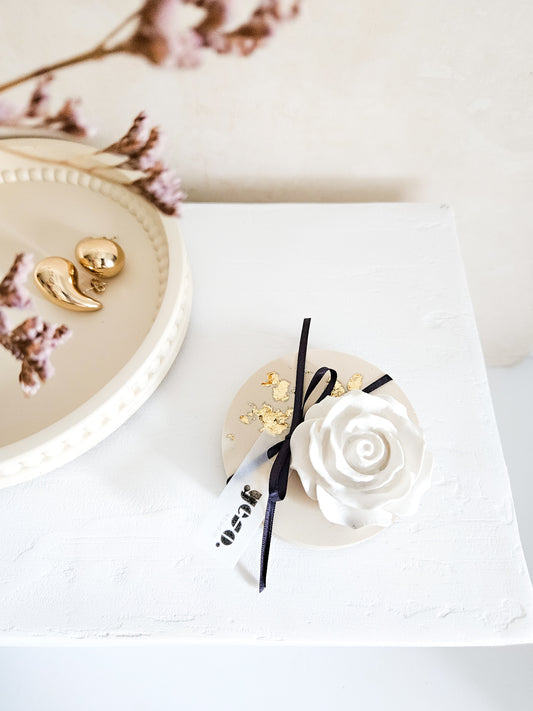 Handcrafted sculptural fragrance pieces inspired by flowers and quiet interiors. Designed to bring serenity and subtle scent to your everyday rituals.