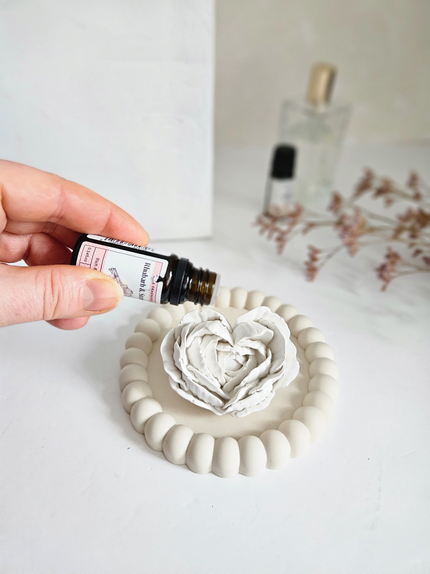 Petite Rose Stone Diffuser with Round Dish