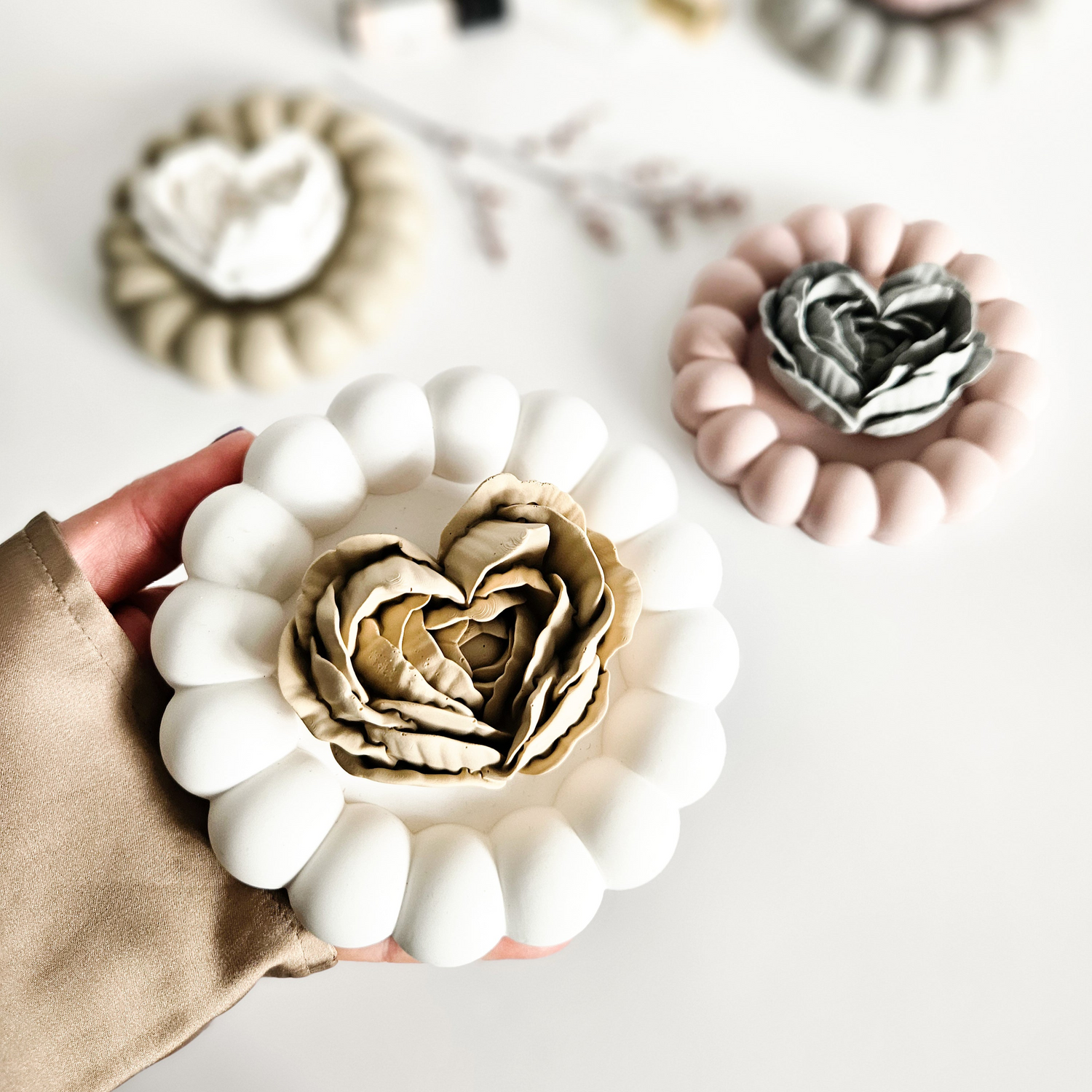 This exquisite set includes our handcrafted Peony Stone Diffuser for essential oils and a Scallop Coaster that doubles as a drink coaster or jewelry dish. The delicate scallop design adds a touch of sophistication to any space.