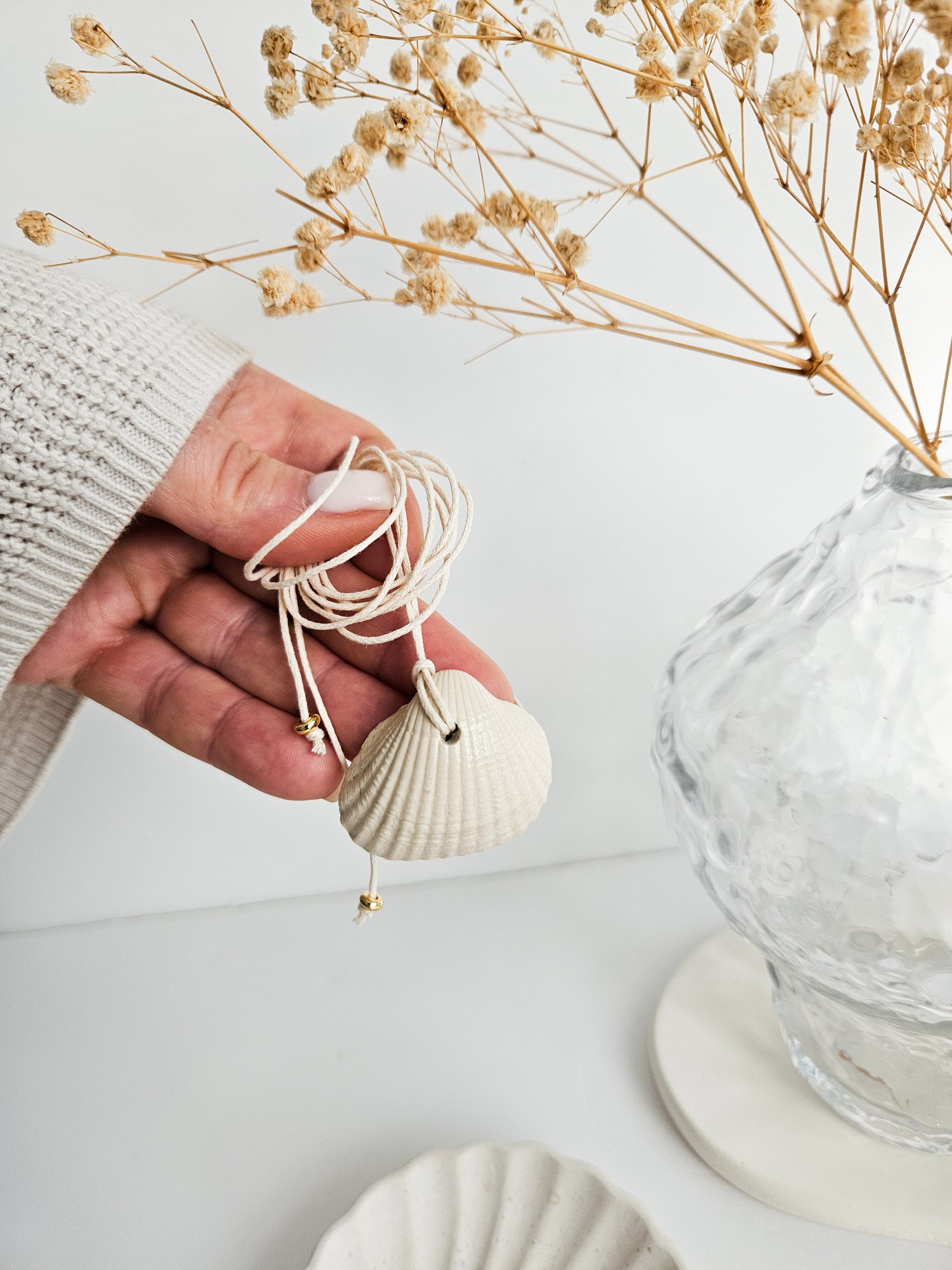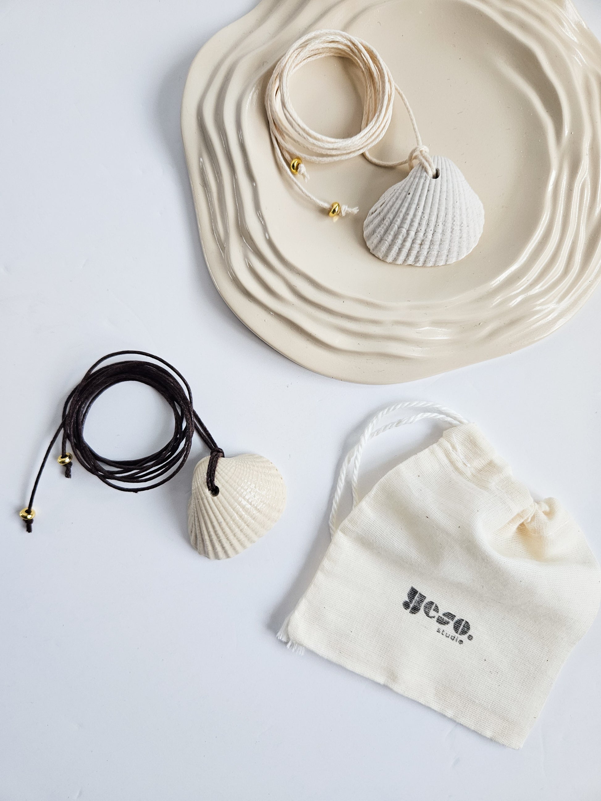 Each necklace features one of four unique shell shapes: