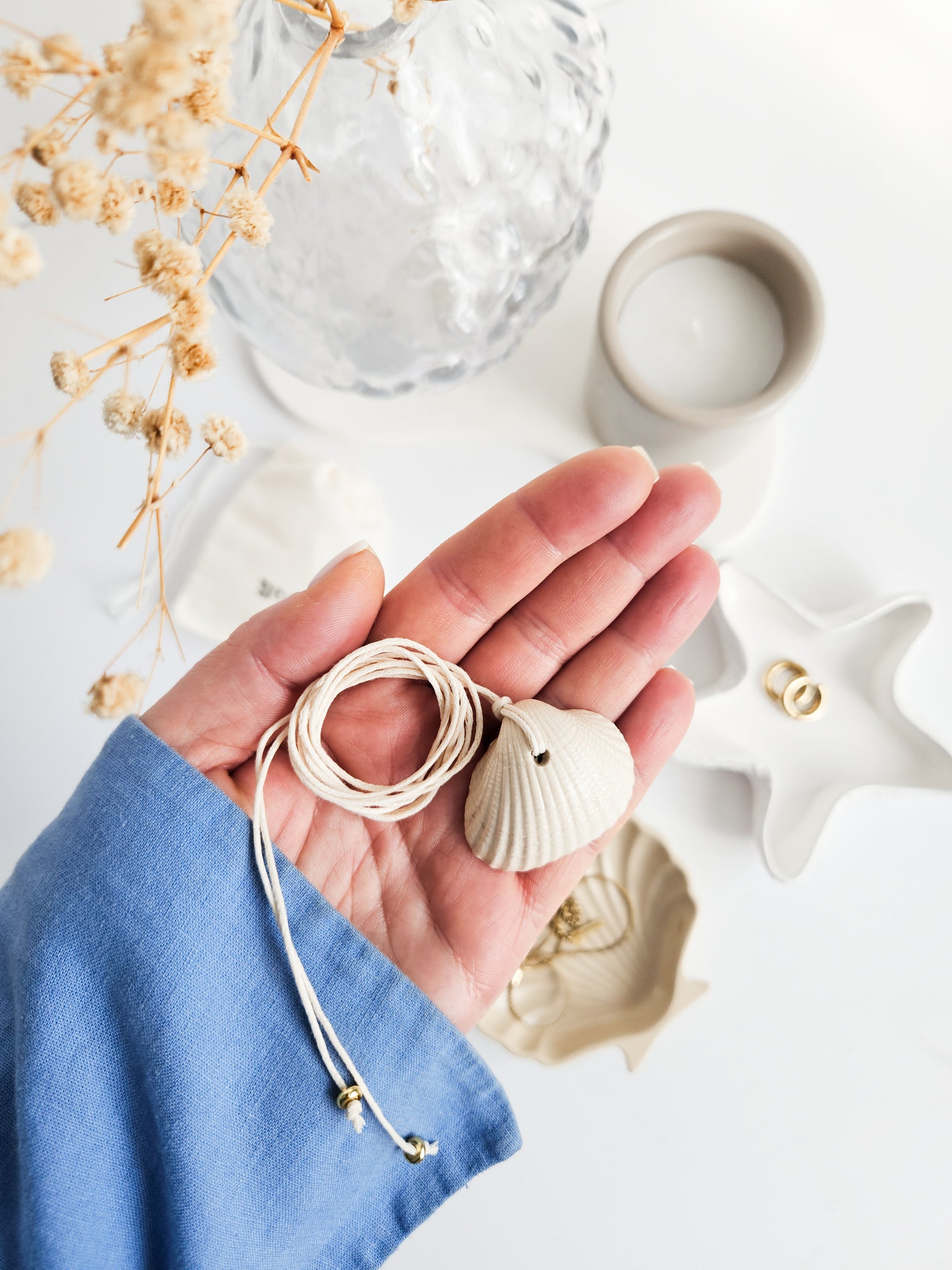 These necklaces are a lovely finishing touch to linen outfits, flowy dresses, or even swimwear. Choose your favourite shell shape and finish to create your own unique summer piece.