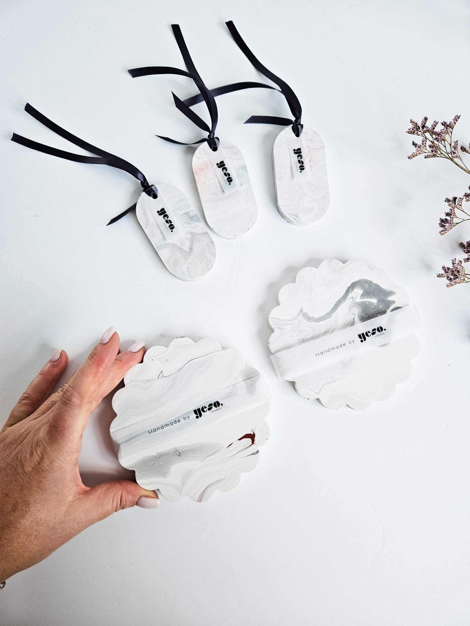 Soft & Subtle Marble – Set of 3 Oval Aroma Stone Tag Diffusers